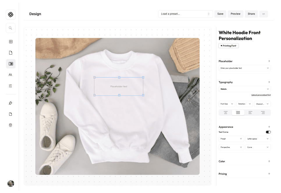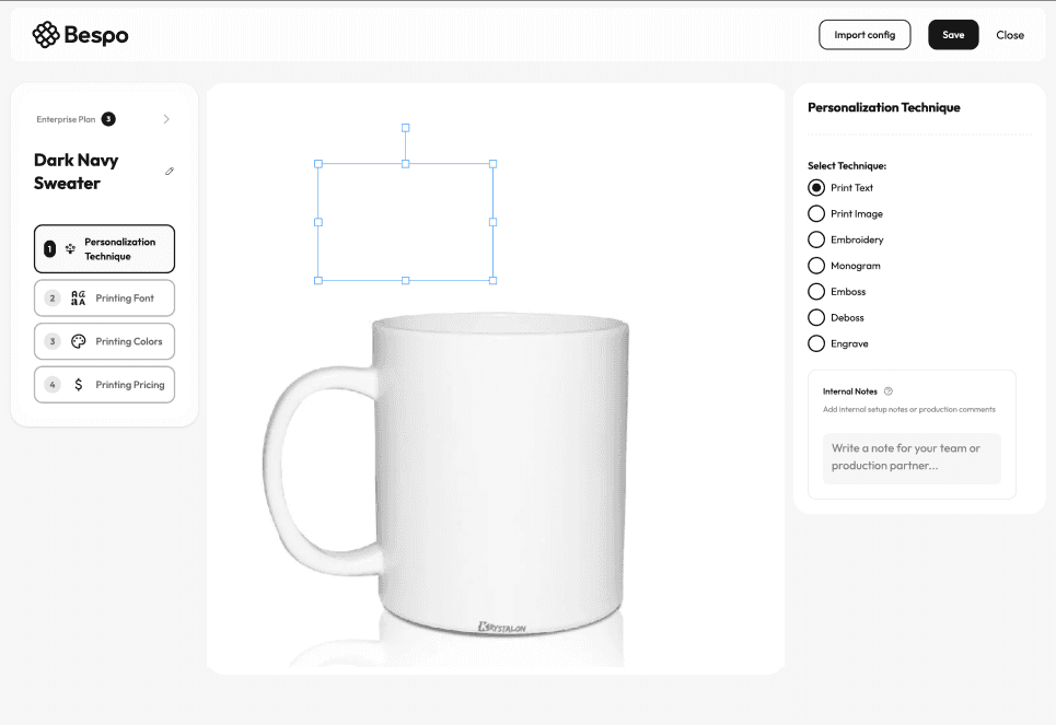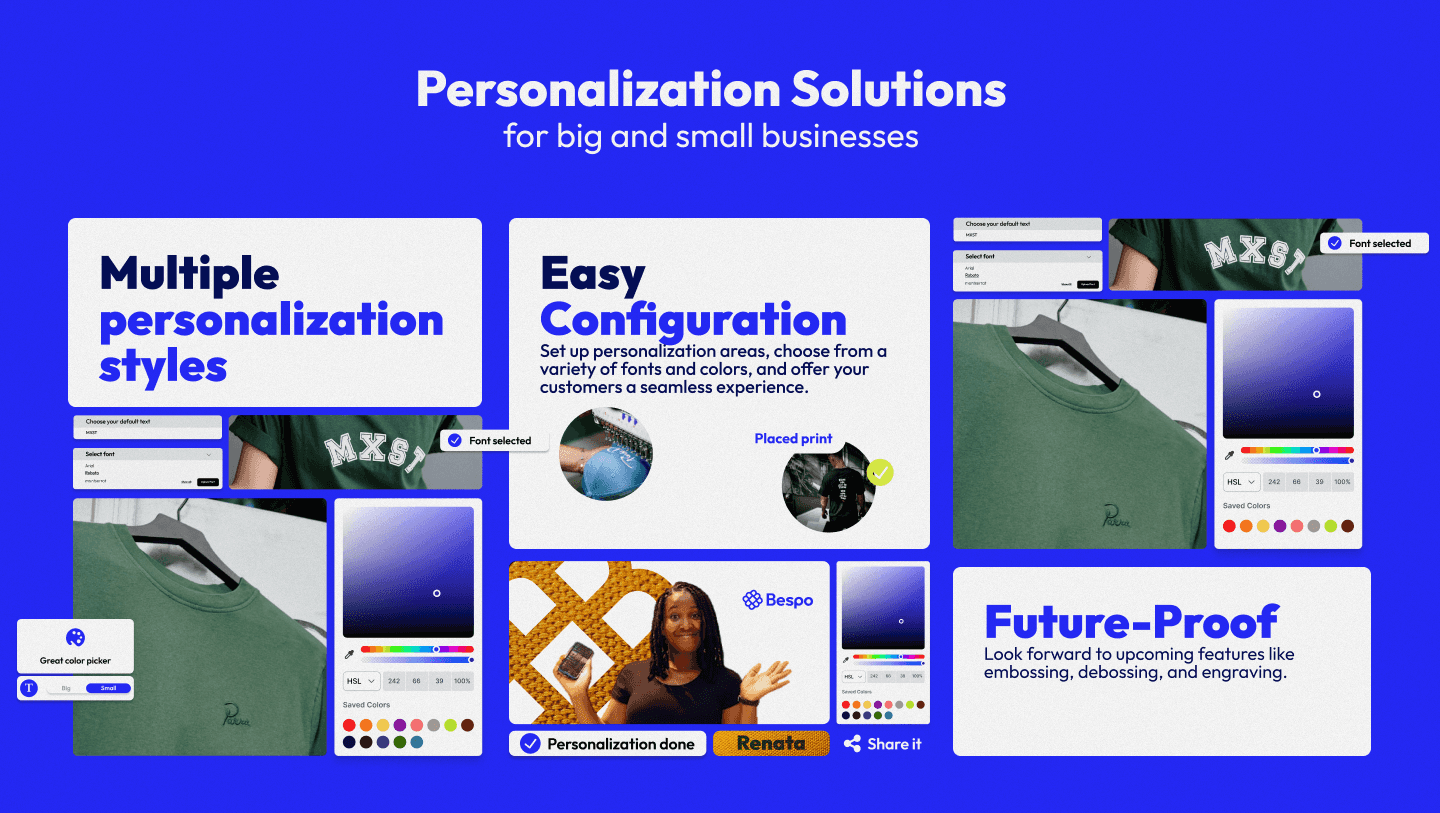 Bespo is a Shopify plugin for product customization that enables merchants to offer personalized items with real-time visual previews directly on the product page. It supports dynamic text and design adjustments and generates structured files for production.