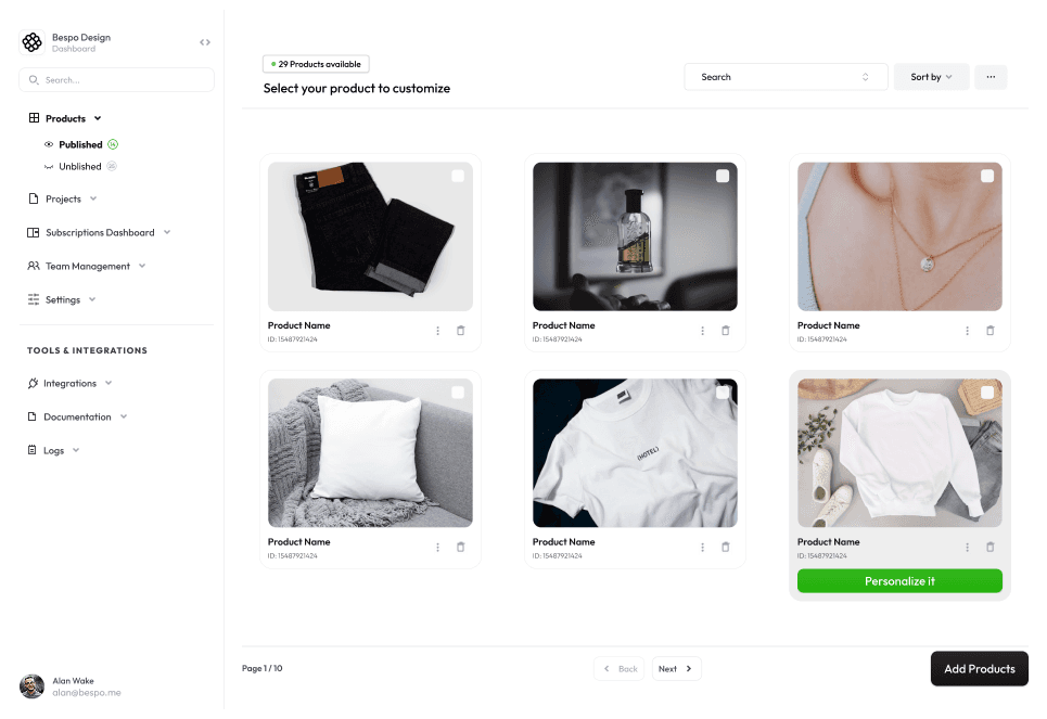 Shopify brands often struggle to offer clear and reliable product personalization, leading to customer hesitation, production errors, and lost sales. There was a need for a simple, no-code solution that could provide real-time previews and production-ready files to ensure accuracy. Bespo solves this by enabling seamless product customization that increases buyer confidence and drives conversions.